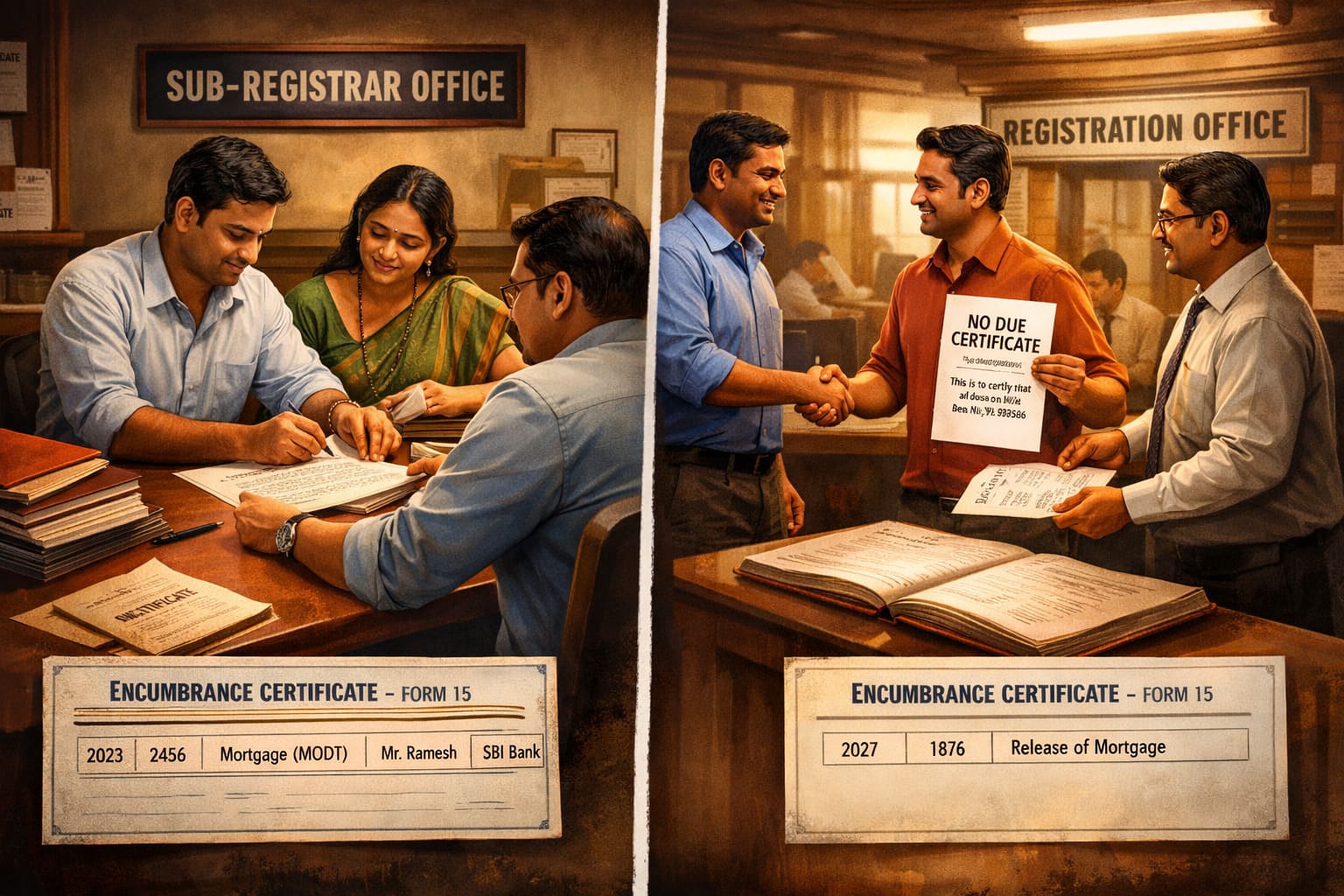 A mortgage enters the EC through registration and is cleared only through proper loan-closure and legal record steps.