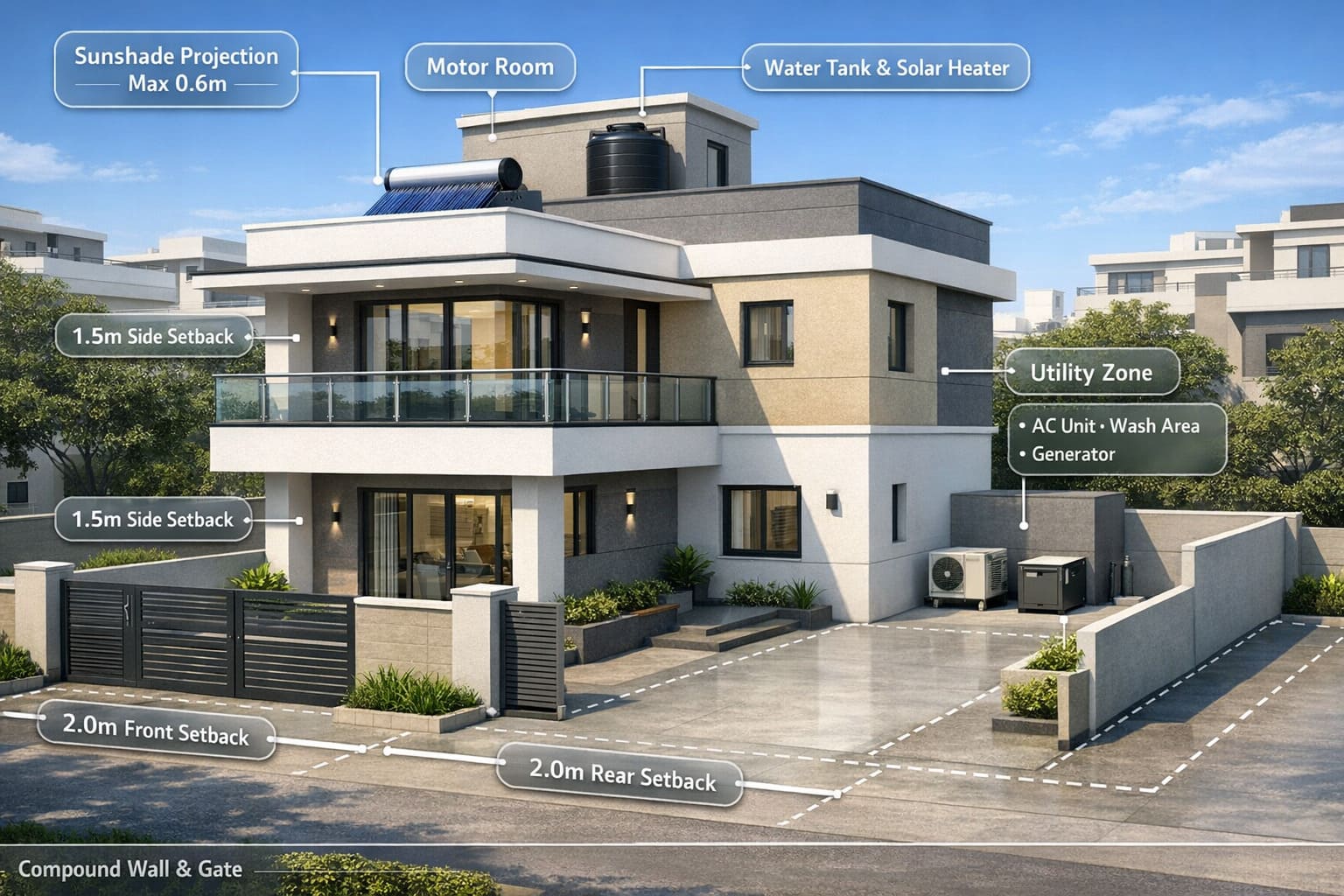 π Setback space is regulated, not free-use land.