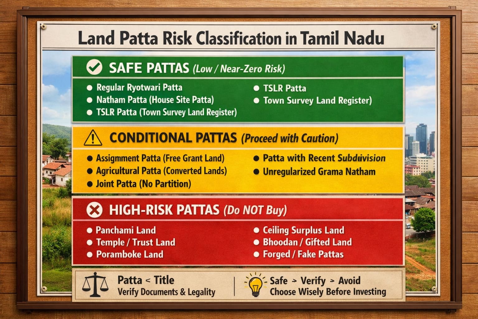 👉 That’s why understanding which pattas are safe, conditional, or high-risk is essential before making any investment decision.