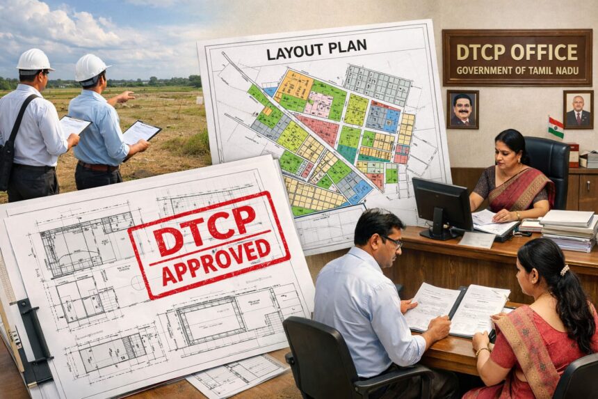 Layout approval in Tamil Nadu is governed by statutory planning laws and administered primarily through the Directorate of Town and Country Planning (DTCP), along with Composite Local Planning Authorities (CLPA), New Town Development Authorities (NTDA), Regional Offices, and Local Bodies.