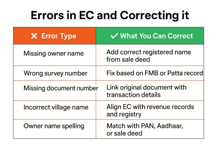 The Encumbrance Certificate (EC) is one of the most critical documents in Tamil Nadu property transactions. It shows the ownership history and whether a property is free of legal dues or mortgages. But errors in ECs are common — from missing entries to spelling mistakes — and if left unchecked, they can derail property sales, bank loans, or lead to disputes later.