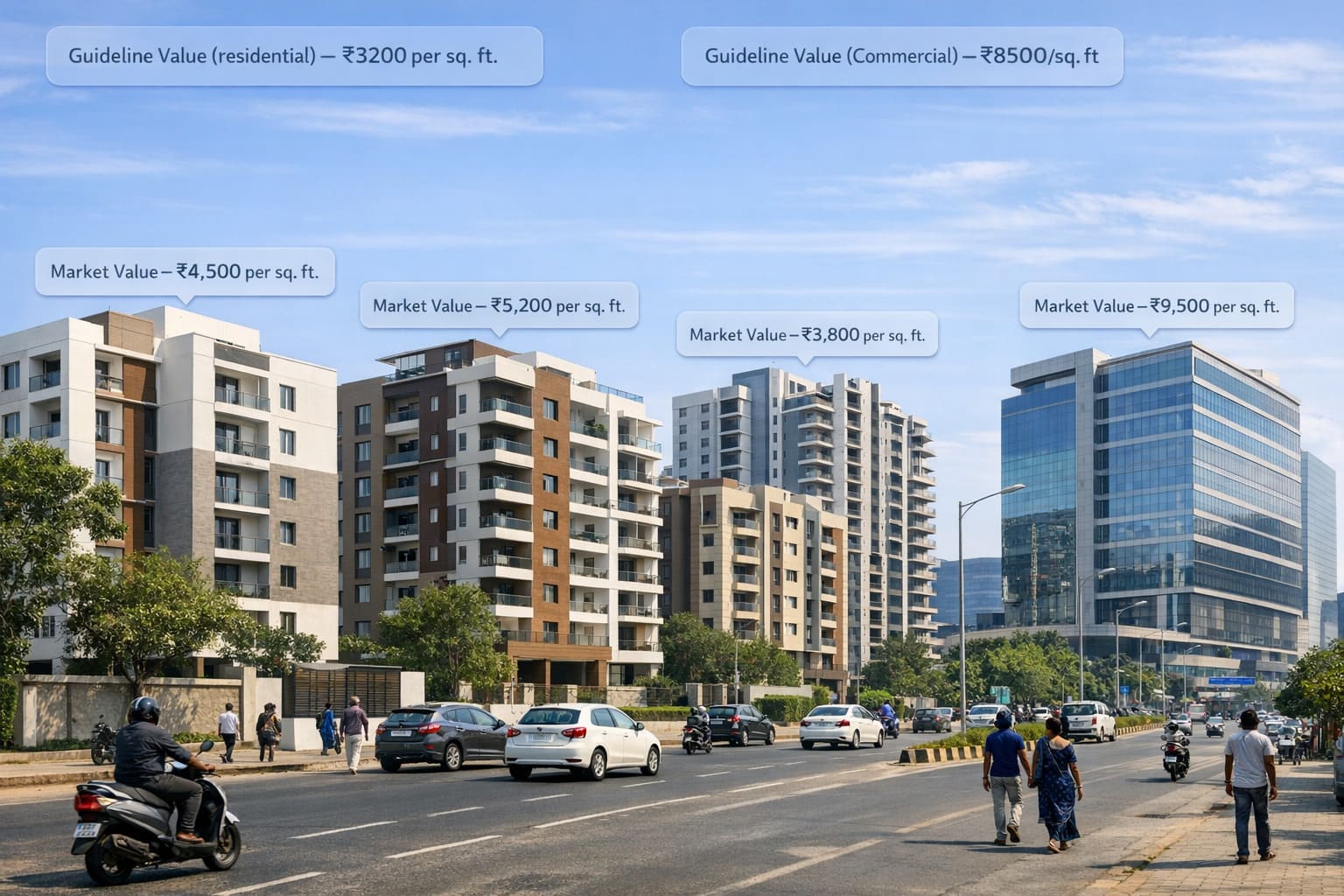 In practice, registration happens on Guideline Value, while price discovery and negotiation happen on Market Value. Failing to understand this distinction can lead to registration hurdles, loan shortfalls, or incorrect pricing decisions.